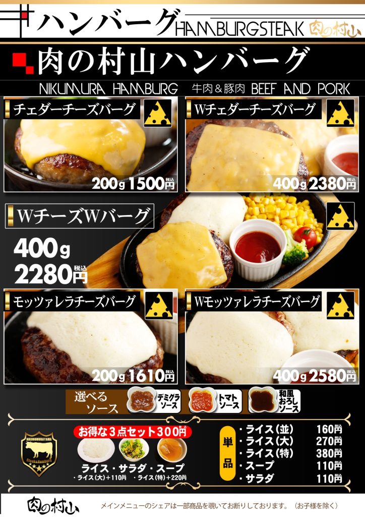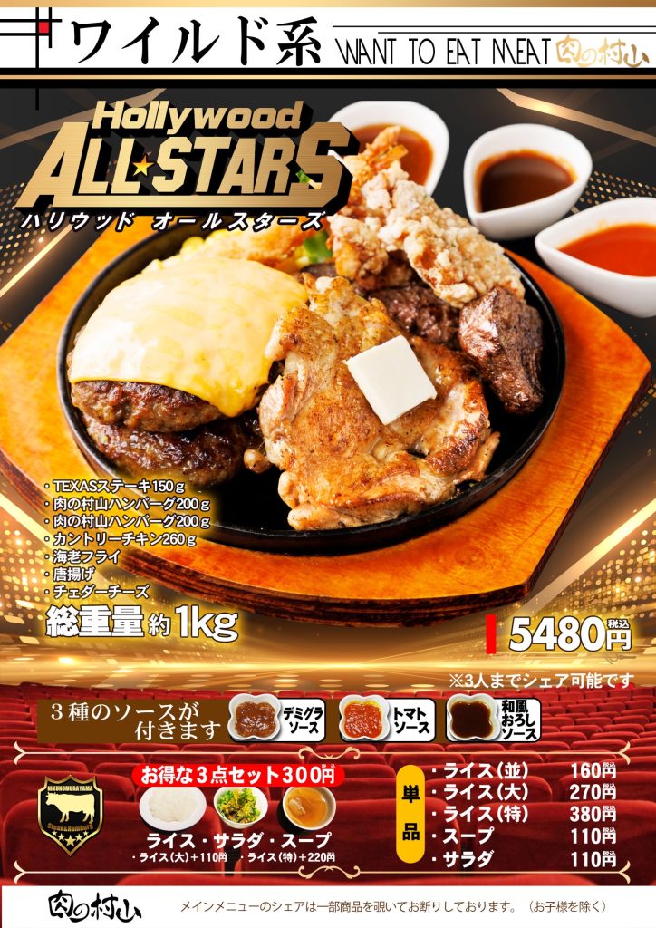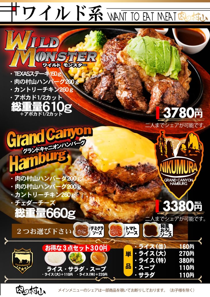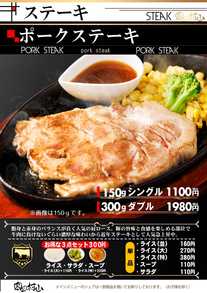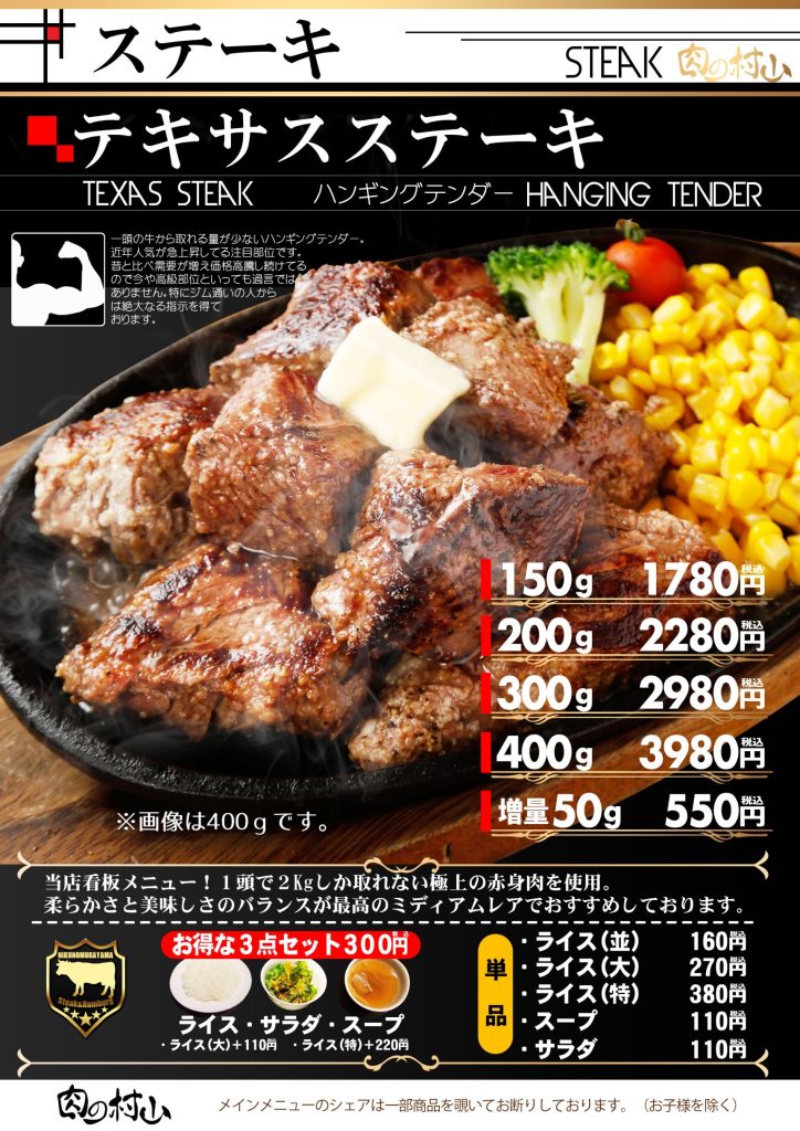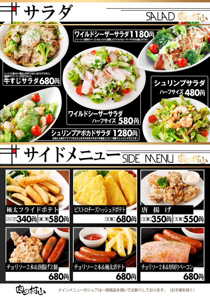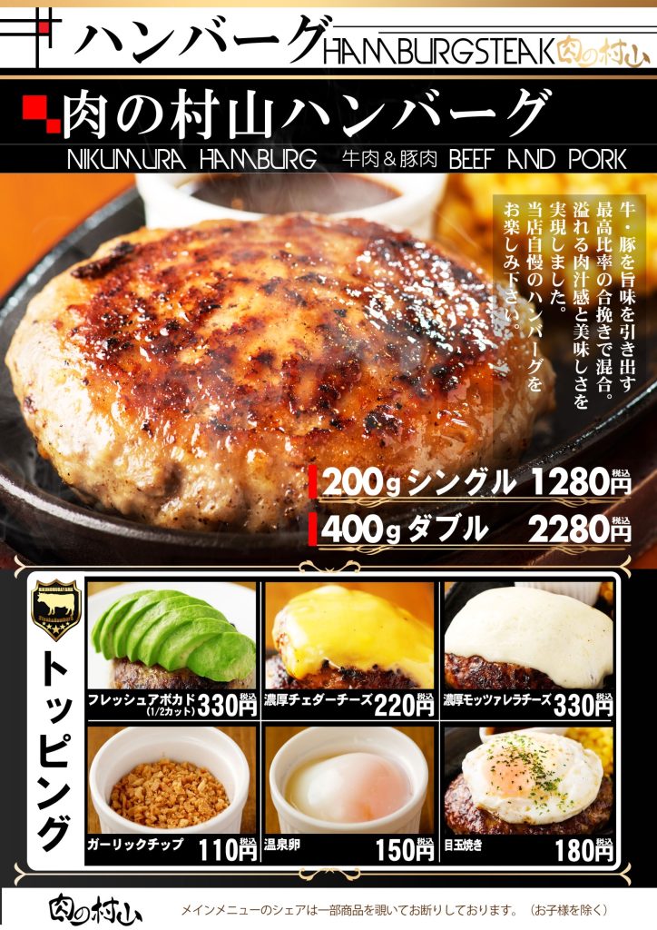 希少な牛サガリのステーキなど、こだわりの上質なお肉と多彩なドリンクが自慢の【肉の村山】。1人1枚しっかりお肉を楽しめるコースは飲み放題120分とポテト食べ放題付きで、舌もお腹もお財布もきっとご満足いただけるはず♪また、何杯飲んでも200円引きのハッピーアワーでは、お肉と相性抜群の海外ビールなどをお得にご提供しております!ウッド調のお洒落な店内で、飲んで笑って食べて、楽しい時間をお過ごしください☆